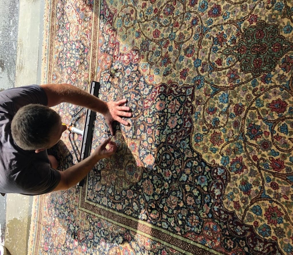 We measure the rug, inspect and test for dye bleeding and then determine the suitable procedure of washing. We also check for damaged and vulnerable areas and discuss any existing and potential problem with you and make sure you are aware of all the steps.